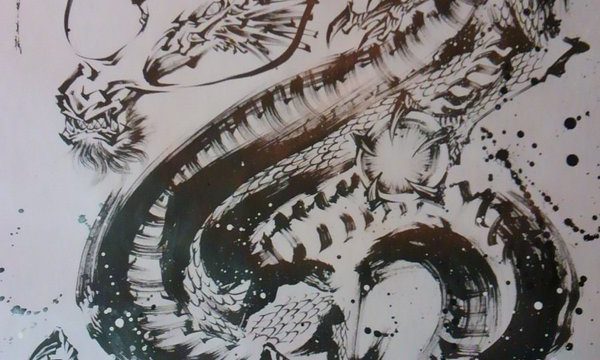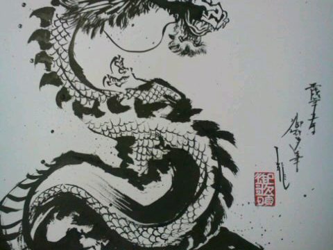 墨絵で「アマビエ」を描きました。