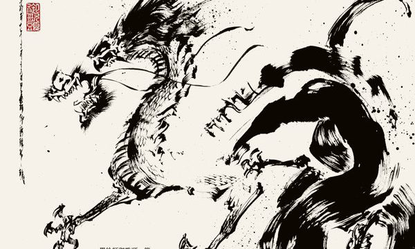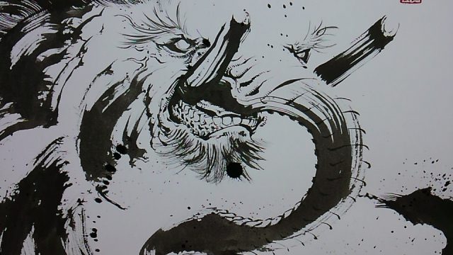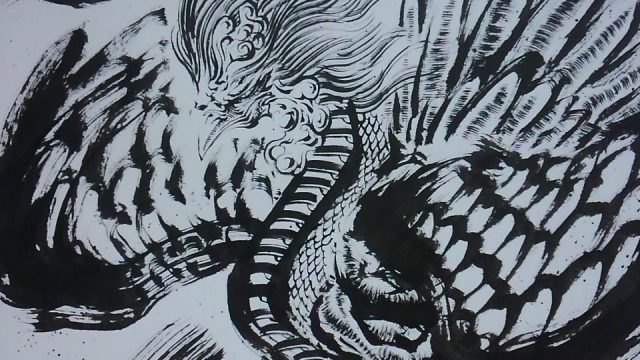 墨絵で妖怪の「アマビエ」