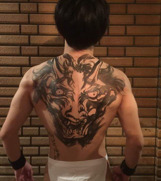イベント2016年 ボディペイント 般若、龍 @okazu-FAN 2016年11月23日 2016.12.04 般若 龍 ボディペイント 般若、龍 青木選手のお背中には般若を上野選手には龍を描きました。 ボディペイント 般若 龍