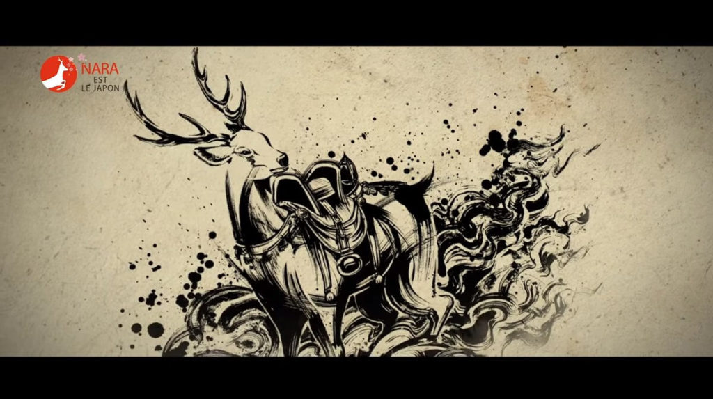 奈良観光ビデオの挿絵で「神鹿」