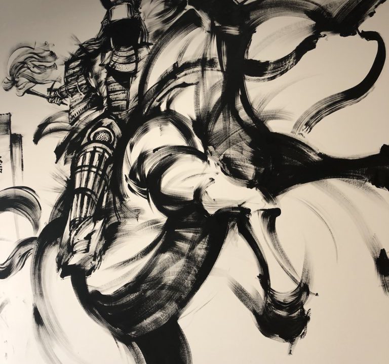 依頼作品石田三成 と 松の木 @okazu-FAN 2018年3月23日 上2枚は 出陣する石田三成 3枚目は 松の木彦根にあるお宅にて書かれた墨絵です。イベントやお店などではよく依頼されて墨絵の壁画を描かれますが、御歌頭さんが個人宅から壁画を依頼されるのは稀だそうです。それに今回依頼されたお宅では、家を設計する段階で絵を前提としていたようで、御歌頭さんにとっても貴重な体験になったとのことでした。 壁画 松の木 石田三成