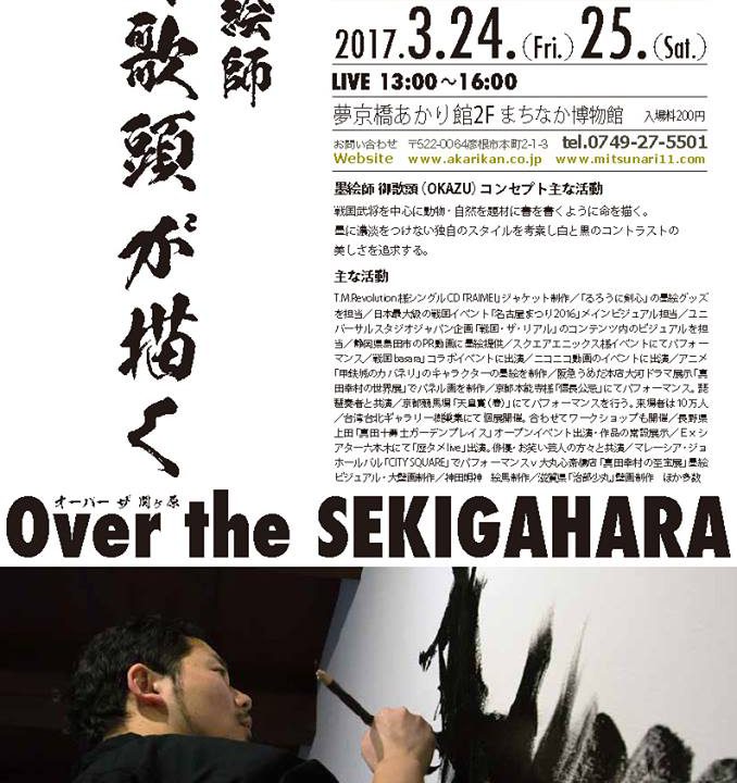 この2日間で関ヶ原の合戦模様を墨絵で描くライブペイントがあるので是非お越しください。