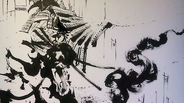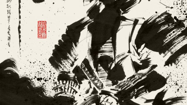 添田一平氏が描いた昌幸公の周りに真田十勇士を赤と白で表現させていただきました。