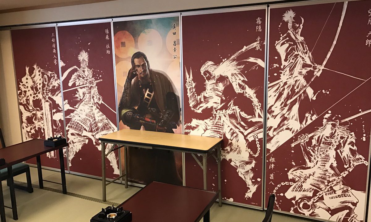 老舗「中松屋」の宴会場に真田十勇士を赤と白で表現 老舗「中松屋」の宴会場に真田十勇士を赤と白で表現